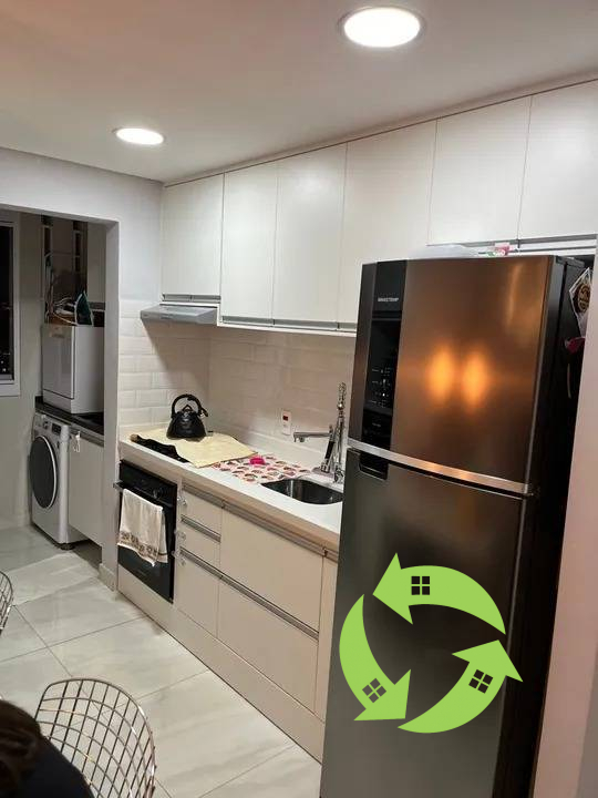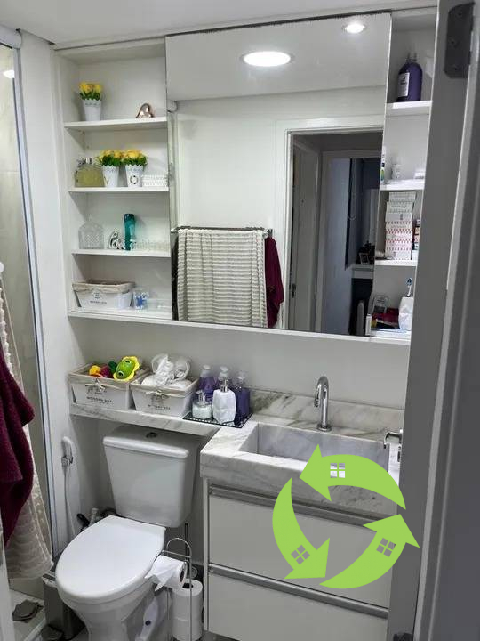 Apartamento todo em armários brancos. Piso em porcenato polido nas áreas molhadas e sala. Quartos em laminado claro.