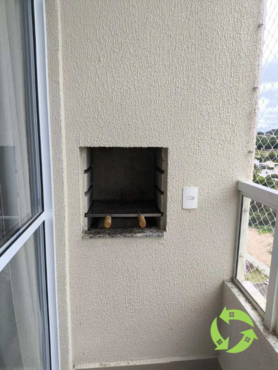 Sacada com churrasqueira a carvão, perfeita para momentos de lazer