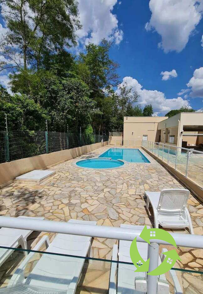 No condomínio há piscina adulto e infantil, quadra poliesportiva, salão de festas, playground, portaria 24 horas