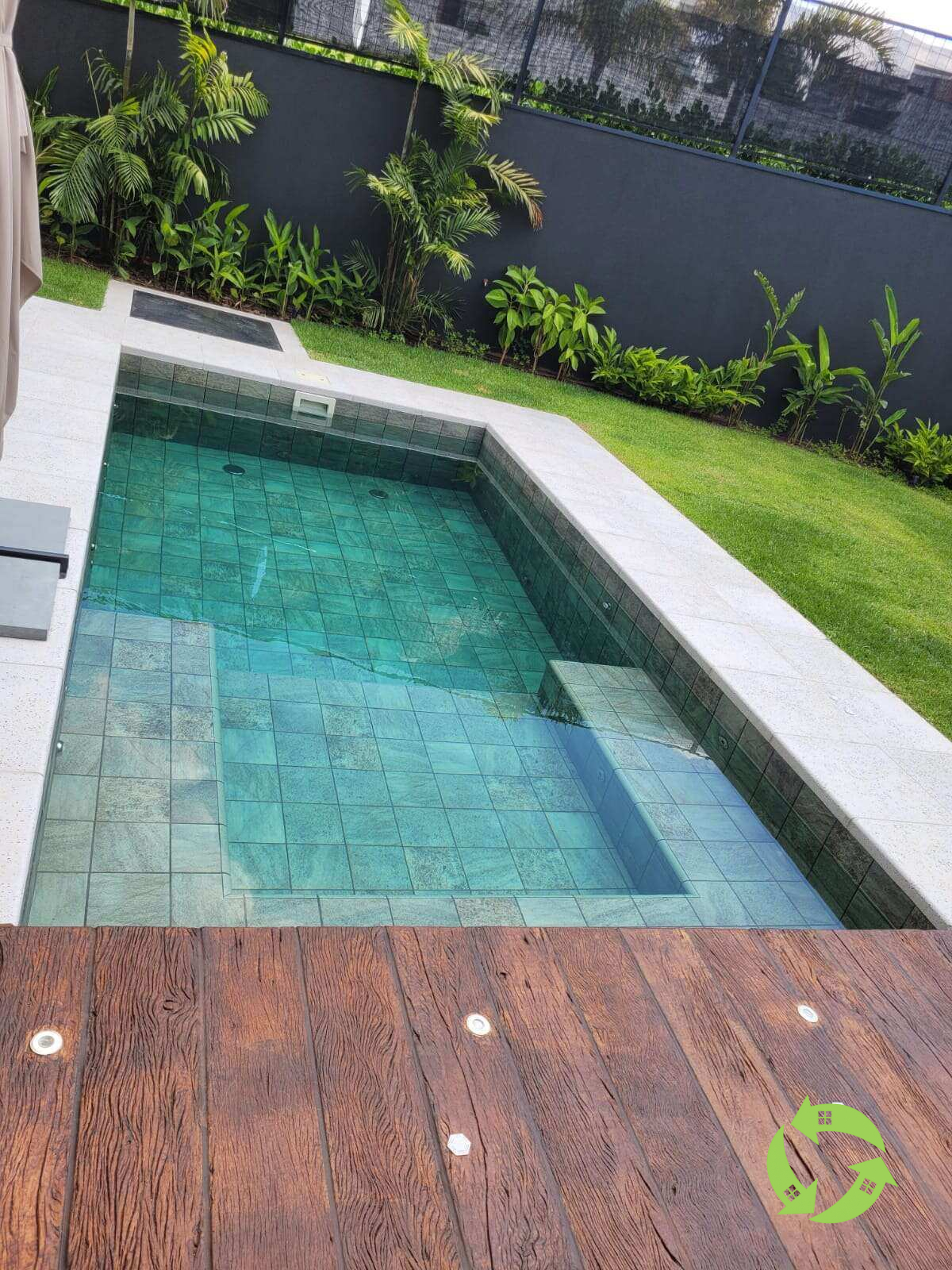 Piscina com aquecimento solar e hidromassagem