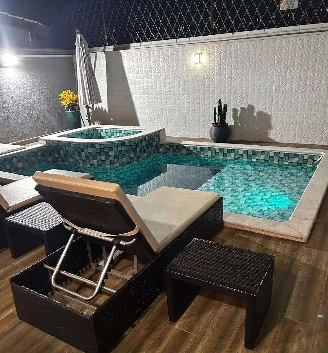 Área gourmet com sistema de som e integrada a piscina com hidro aquecida