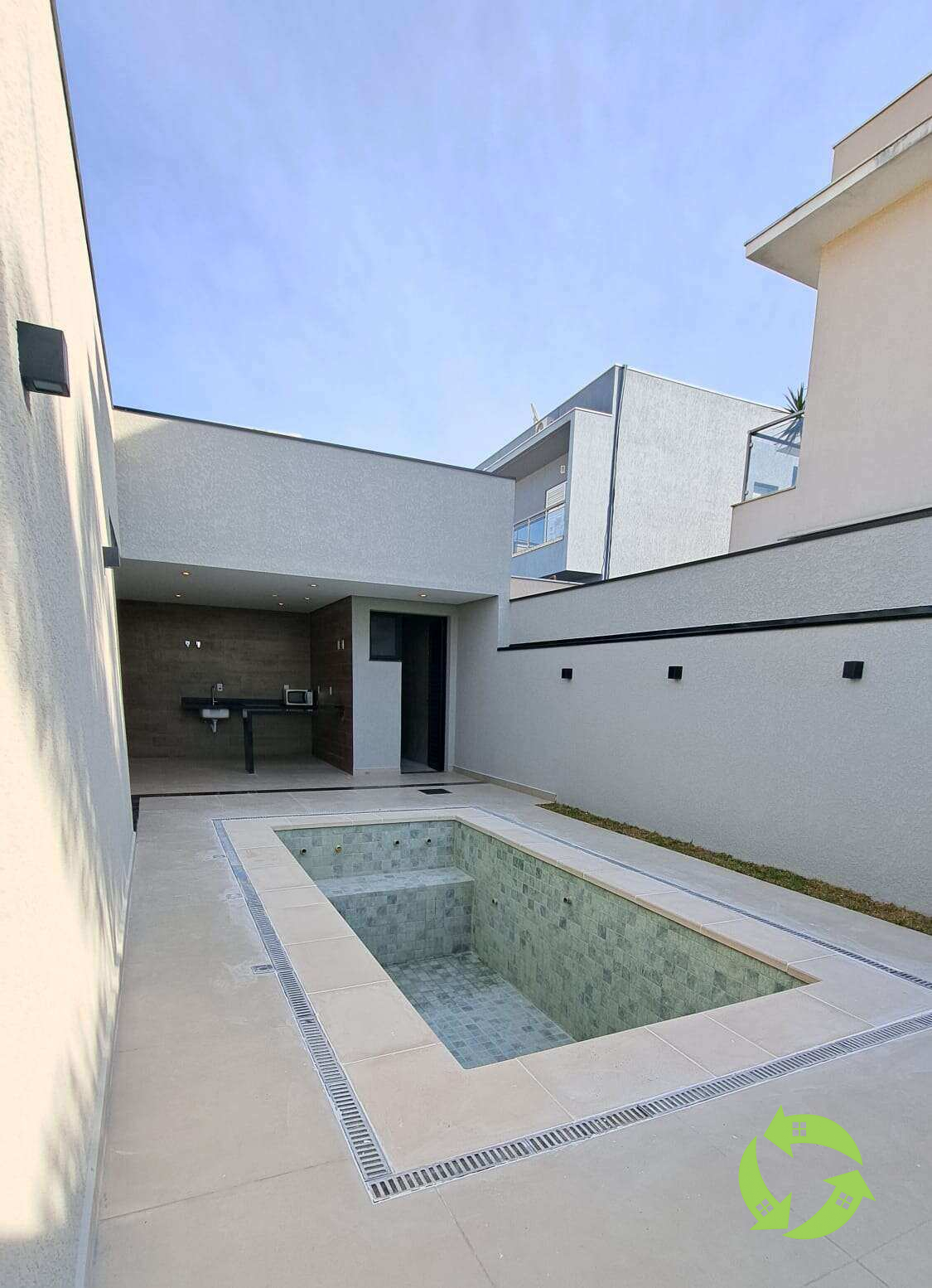 Piscina com iluminação e hidromassagem