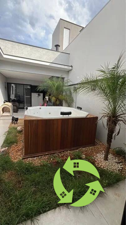 A casa possui armários na cozinha e nos quartos, além de ar condicionado, jacuzzi.