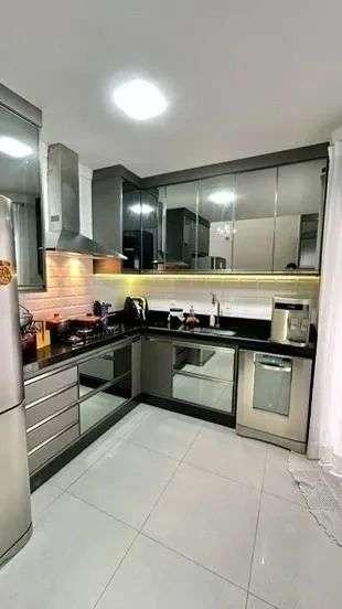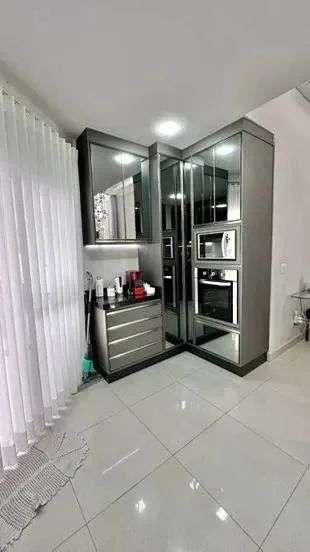 Excelente cozinha, inteira de armários embutidos de alta qualidade com portas em espelho e iluminação, amortecimentos nas gavetas e portas, coifa e espaço Café.