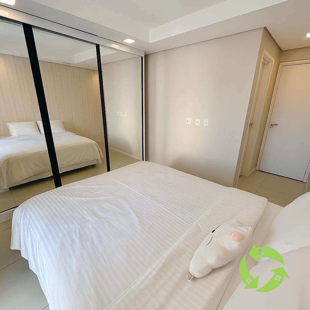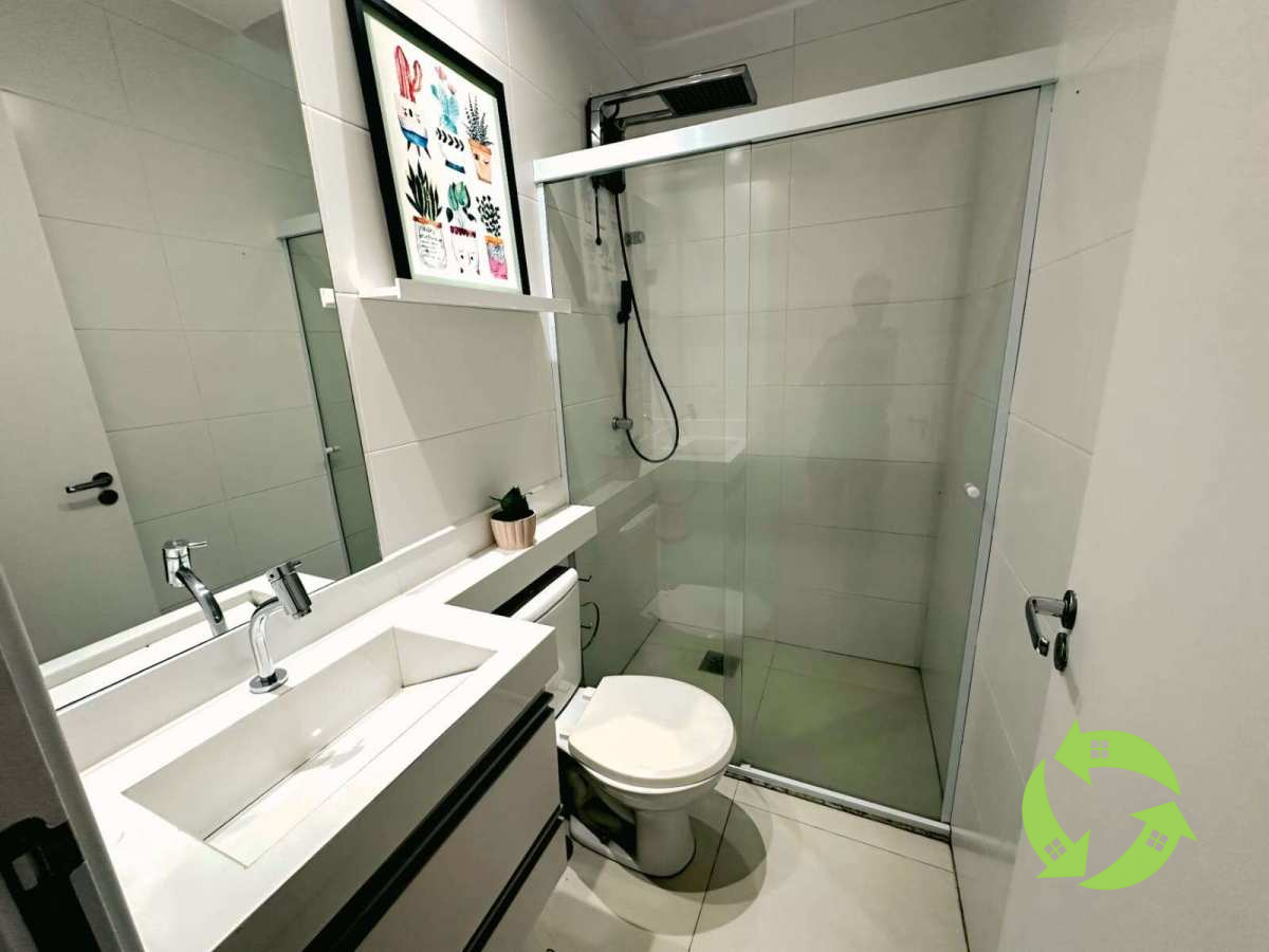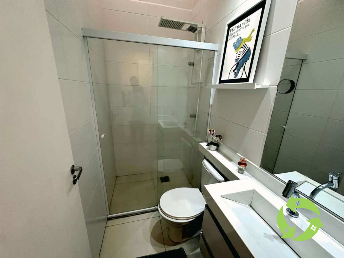 2 suítes, ambas com grandes guarda-roupas embutidos. Sendo 1 com varanda e os banheiros completos com armários sob a pia, box de vidro